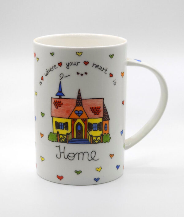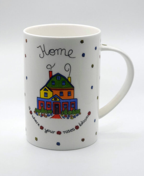 The fine bone china Sweet Home Mug features a colourful illustration of a house and a reminder that ‘Home is where your roses bloom’ or ‘Home is where your heart is’. It’s the ideal size for enjoying your cup of Elmstock tea when you’re cosy at home.