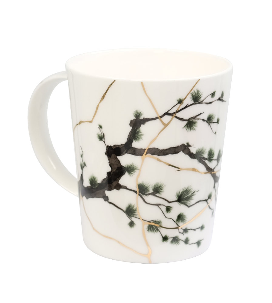 The Cupti Akashi Cup is made from Fine Bone China, features a pine tree design with gold accents. This delicate 500ml mug is light but durable and handles large and small brews. The perfect way to enjoy your favourite cup of Elmstock.