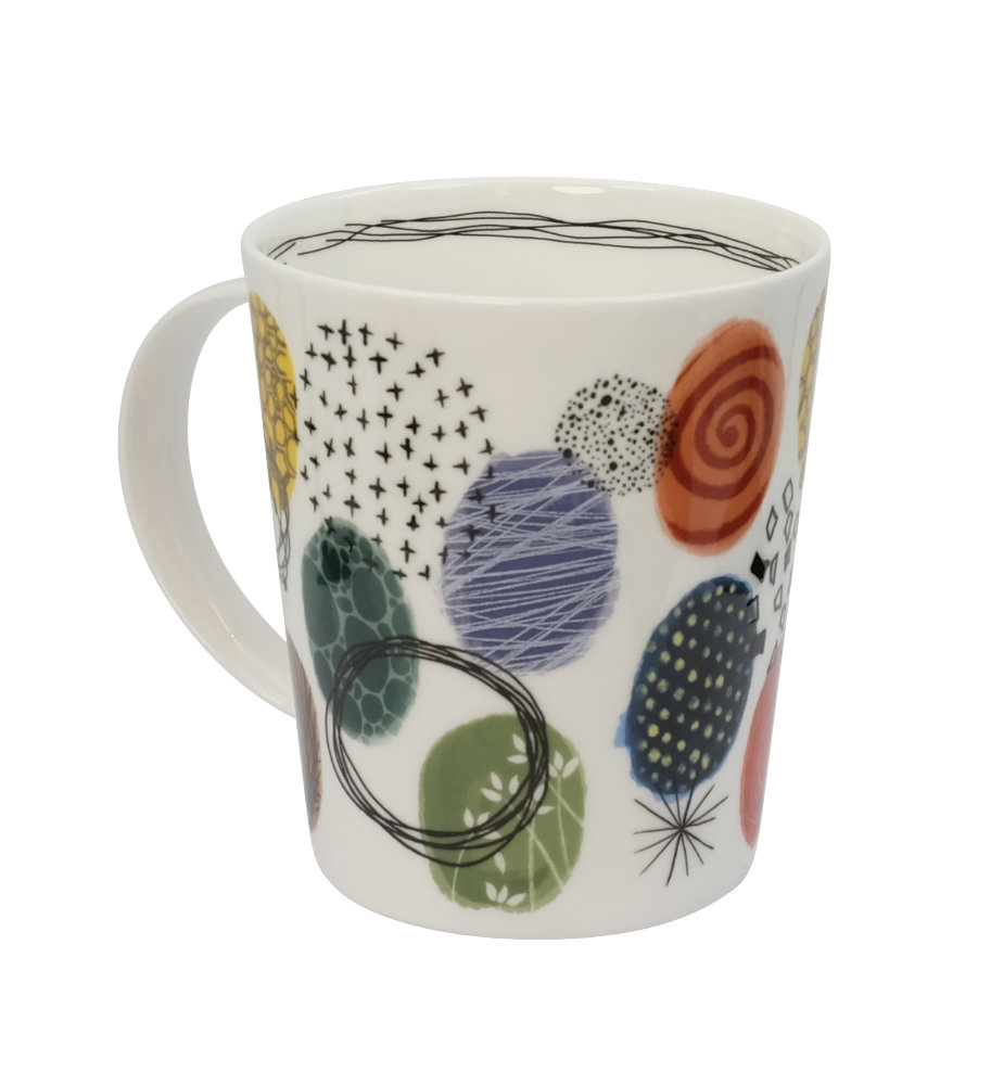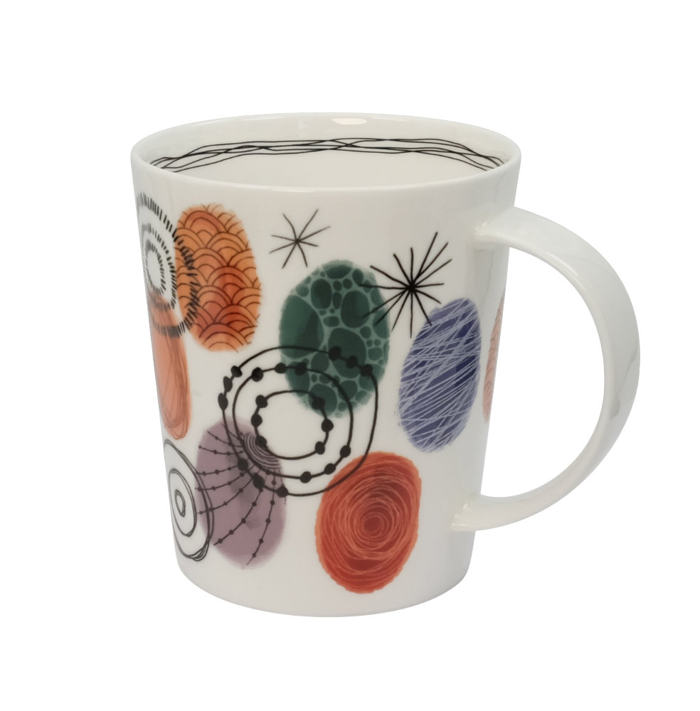 The Cupti Balloon Cup is made from Fine Bone China, features an abstract circular design. This delicate 500ml mug is light but durable and handles large and small brews. The perfect way to enjoy your favourite cup of Elmstock.